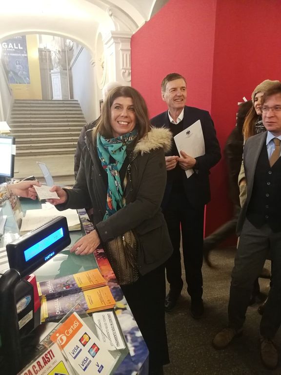 Federica Riberti (che non si aspettava davvero un’accoglienza così importante con premi e giornalisti) di Canale ha comprato il 40millesimo ticket, la giovanissima Julia turista bielorussa in viaggio in Italia e conterranea di Chagall è arrivata subito prima, al giornalista Gabriele Azzalini, di Torino, Segretario generale del gruppo Dirigenti Fiat che ha portato in visita proprio questa mattina un gruppo di 50 persone, il biglietto 40mila e uno.