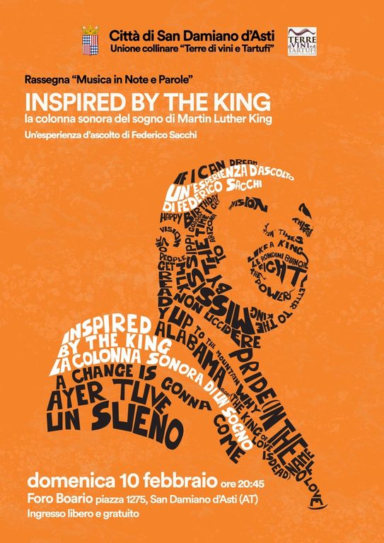 Ne sarà protagonista lo storyteller villanovese (ma ormai torinese “d’adozione”) Federico Sacchi, che proporrà “Inspired by the King”, un omaggio a Martin Luther King che Sacchi definisce “un lavoro necessario per non ripetere gli errori del passato”.