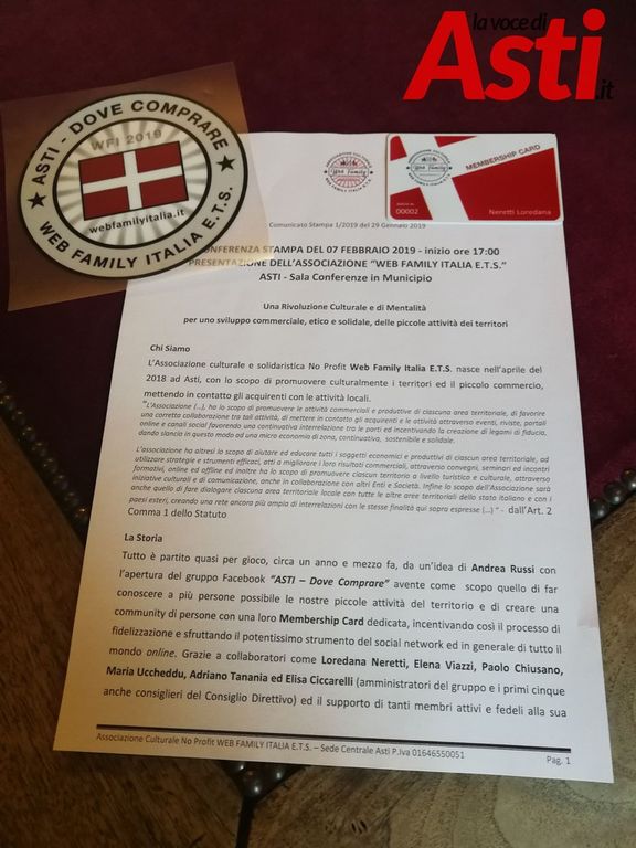 L’Associazione culturale e solidaristica No Profit Web Family Italia E.T.S. è nata nell’aprile del 2018 ad Asti, con lo scopo di promuovere culturalmente il territorio e il piccolo commercio, mettendo in contatto gli acquirenti con le attività locali.