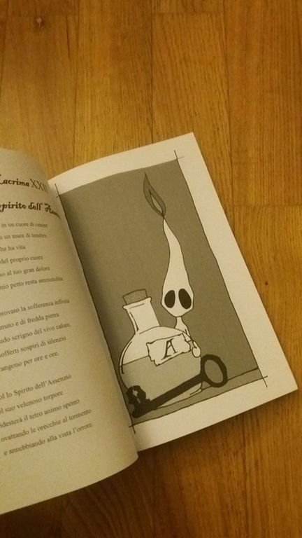Le illustrazioni, dello stesso Alessandro, accompagnano il lettore in questo viaggio onirico, sognante, quasi psichedelico. Il protagonista è sempre questo lume vagante, bianco, con una piccola fiamma sul capo, che cerca di far luce sulle dinamiche che mano a mano vengono descritte.