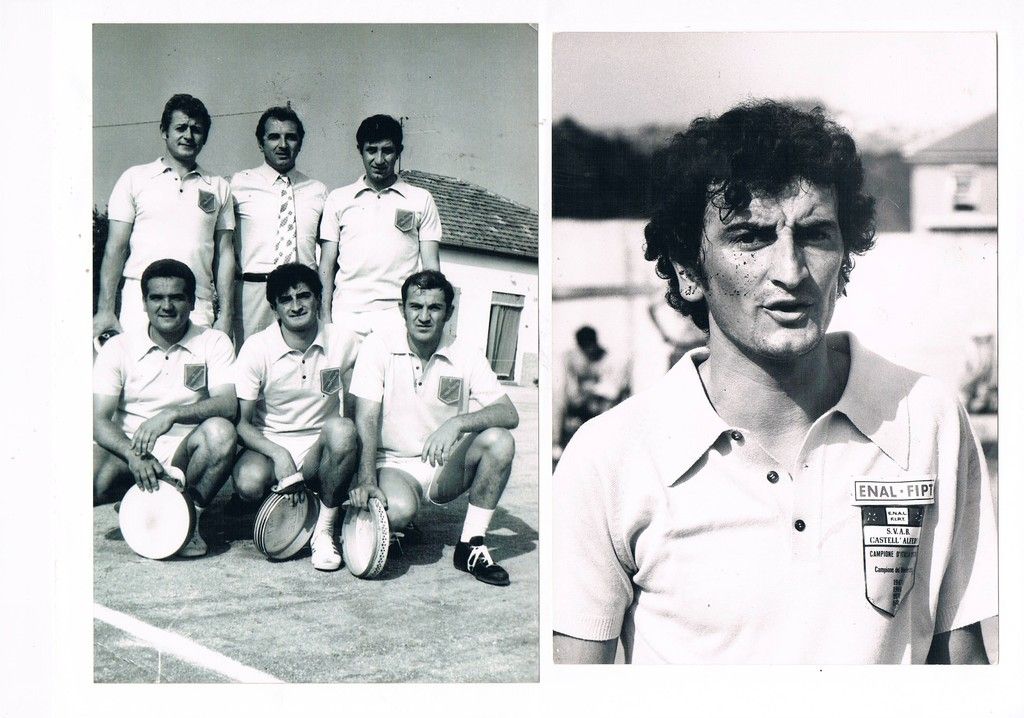 - Foto 8: 1970 sul mitico campo dei Salvi di San Massimo di Verona: vincemmo contro i veneti capeggiati da uno dei forti giocatori di ogni tempo, Salvatore Biasi detto "Tore". Racconta Cerot: "Il campo era l'aia della fattoria ed esiste ancora oggi e sarò presente il 2 giugno per una "rentrée" con vecchi compagni d'un tempo per ricordare Flavio Bertagnoli detto "Bomba" deceduto per il male sottile alcuni anni fa. La squadra era composta da Mario Riva, mezzovolo, Sandro Vigna il mitico "patron" del Castell'Alfero di allora Luigi Casalone terzino Sotto Angelo Uva, rimettitore, io al centro e Armando Pentore, battitore"
