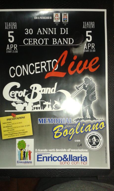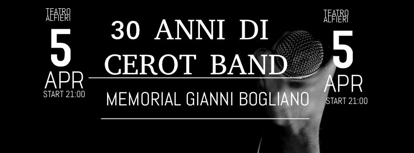 Tutto esaurito per questo evento imperdibile che vedrà sul palco più di 50 elementi che negli anni hanno fatto parte della mitica Cerot Band, ad iniziare dal suo leader Aldo "Cerot" Marello-