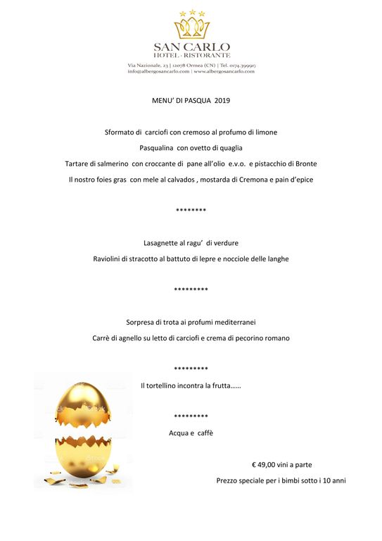 La Pasqua e la Pasquetta 2019 si prospettano davvero imperdibili presso l’Albergo Ristorante San Carlo di Ormea. È il posto giusto dove trascorrere i due giorni in compagnia di amici e parenti nella piccola e incantevole frazione sulle montagne dell’Alta Val Tanaro, a poco più di tre minuti dal centro abitato di Ormea. Il Ristorante San Carlo, situato a ridosso del fiume Tanaro, permette ai clienti di vivere un’esperienza in un ambiente accogliente e tranquillo dove gustare un’ottima cucina, caratterizzata dai piatti Piemontesi, arricchita da una attenta scelta di ingredienti freschi e dei migliori prodotti che offre il territorio dell’Alta Val Tanaro.