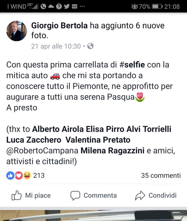 Continua anche a Pasqua il tour di Giorgio Bertola che con la "bertomobile" (come scrive qualcuno nei commenti), gira la Regione con il suo "Il Piemonte #cambiapasso".