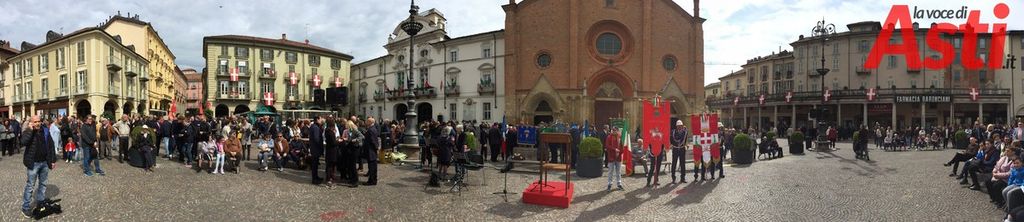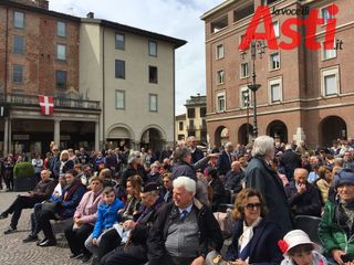 Da piazza san Secondo un lungo momento di riflessione, cominciato con le parole di Paolo Monticone, presidente Anpi di Asti: "Questa è una festa di tutti; è la festa del vivere democratico: di certo non è un derby, come qualcuno pensa. Qualcuno ha bisogno di rileggersi qualche testo di storia. La Resistenza è la nostra Carta Costituzionale. Il 25 aprile non è solo la festa dell'Anpi, ma è festa nazionale".