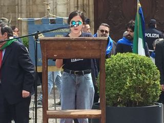 "Non sono uno storico né un oratore: perdonatemi se non farò un discorso perfetto. La Costituzione e la Resistenza sono due facce della stessa medaglia. Durante il Fascismo ci sono state anche cose importanti per i cittadini, ma queste sono state cancellate con le Leggi Razziali e il razzismo. Sono stati tantissimi i giovani che hanno donato le loro vite per il Paese, per un futuro diverso. Bisogna fare attenzione: democrazia e libertà si perdono senza nemmeno accorgersene. Dico grazie ai presenti, ma mi chiedo anche: perché non siamo di più in questa piazza? Questi valori si danno troppo per scontato. il 25 aprile è una festa di tutti, non deve essere etichettata a nessuno. Tutti hanno dato il loro contributo".