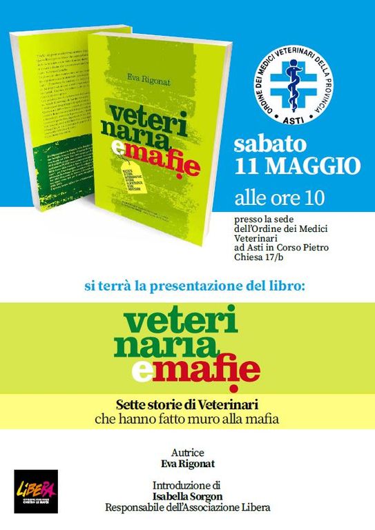 Sette storie di uomini, donne, animali e mafia. Che la veterinaria Eva Rigonat ha salvato dall’oblio raccontandole nel libro “Veterinaria e Mafie”, che verrà presentato sabato 11 maggio alle 10 in corso Pietro Chiesa 17/b, sede dell’Ordine dei medici veterinari che promuove l’iniziativa, alla presenza di Isabella Sorgon, responsabile Associazione Libera.