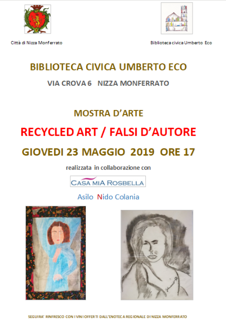 Giovedì prossimo (23 maggio) alle 17, presso la Biblioteca “Umberto Eco” di Nizza Monferrato, si svolgerà l’inaugurazione della mostra d’arte “Recycled art/Falsi d’autore”, realizzata con gli ospiti della casa di riposo Rosbella da Emanuela Terranova, educatrice professionale, e da Valentina Secco, psicologa, entrambi responsabili del progetto.
