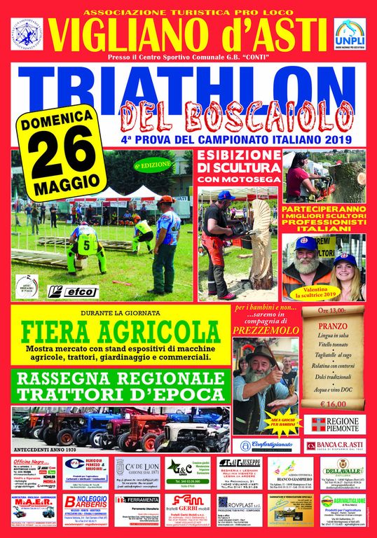 Domenica, Vigliano d’Asti tornerà ad ospitare un curioso evento, ormai consolidato. Ovvero, presso il Centro sportivo “G.B. Conti” di via Boglietto, si potrà assistere alla quarta prova del campionato italiano 2019 dei boscaioli, che si svolge ormai da alcuni decenni. Le prove del campionato consistono in abbattimento, sramatura e taglio con accetta.