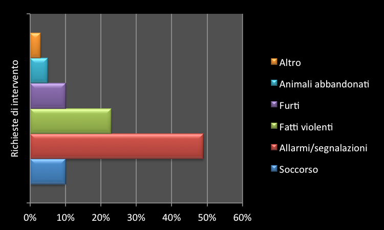 Quasi la metà delle chiamate viene fatta per allarme o segnalazione