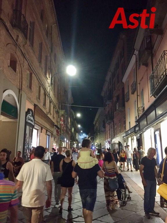 Neanche il caldo torrido di questi giorni ha fermato la voglia di esserci degli astigiani, che non hanno rinunciato a trascorrere il sabato sera in città, in compagnia di amici o familiari.