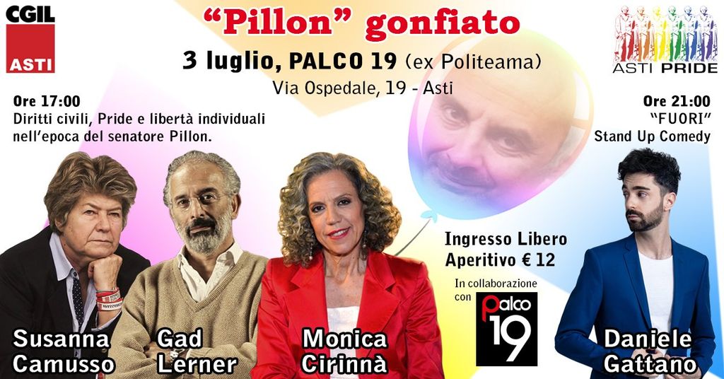 I tre importanti relatori si confronteranno su temi di grande rilevanza e attualità quali i diritti civili, le libertà individuali, le Unioni Civili ed i tanti Pride che stanno percorrendo l'Italia per affermare ad alta voce i diritti delle persone Lgbtqi. Il tutto partendo dal discusso disegno di legge presentato nei mesi scorsi dal Senatore leghista Simone Pillon, tant’è che l’incontro è stato ironicamente battezzato ‘Il Pillon gonfiato’.