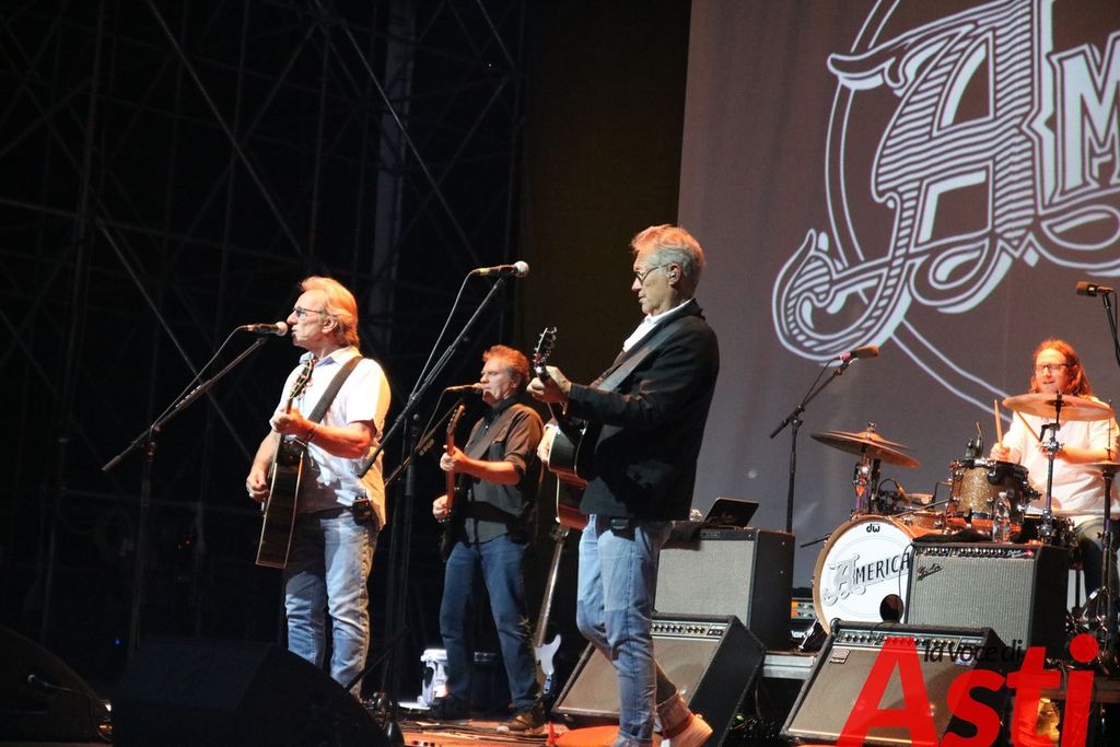 Il loro stile inconfondibile, un rock morbido che accarezza note della west coast, con quella inconfondibile nota vocale che pare arrivare dall’anima, ha scaldato la già calda piazza Cattedrale di Asti che ha accolto la band con grande entusiamo. Un po’ di stupore per i tanti giovani che conoscevano perfettamente le canzoni. Probabilmente figli di appassionati, ragazzi cresciuti a biberon e rock.