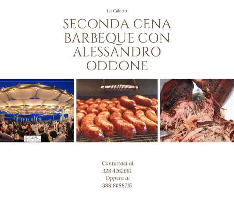 Sabato 13 luglio a partire dalle 21 presso la spiaggia La Caletta, in via al Mare 10 a Bussana di Sanremo il campione internazionale di barbeque Alessandro Oddone propone una cena a base di portate per le quali ha ricevuto vari premi in competizioni internazionali: brisket , pulled pork e smoked sausage, accompagnati da patatine fritte.