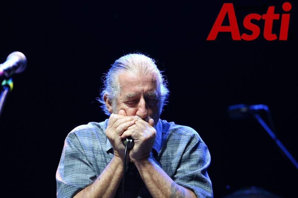 "Asti, la Treves Blues Band non è venuta qui per fare polemiche. Ma qui quello che conta è il cuore, non solo avere degli impianti da stadio. Noi cerchiamo di suonare abbastanza acustico", dice Treves a un pubblico attento.