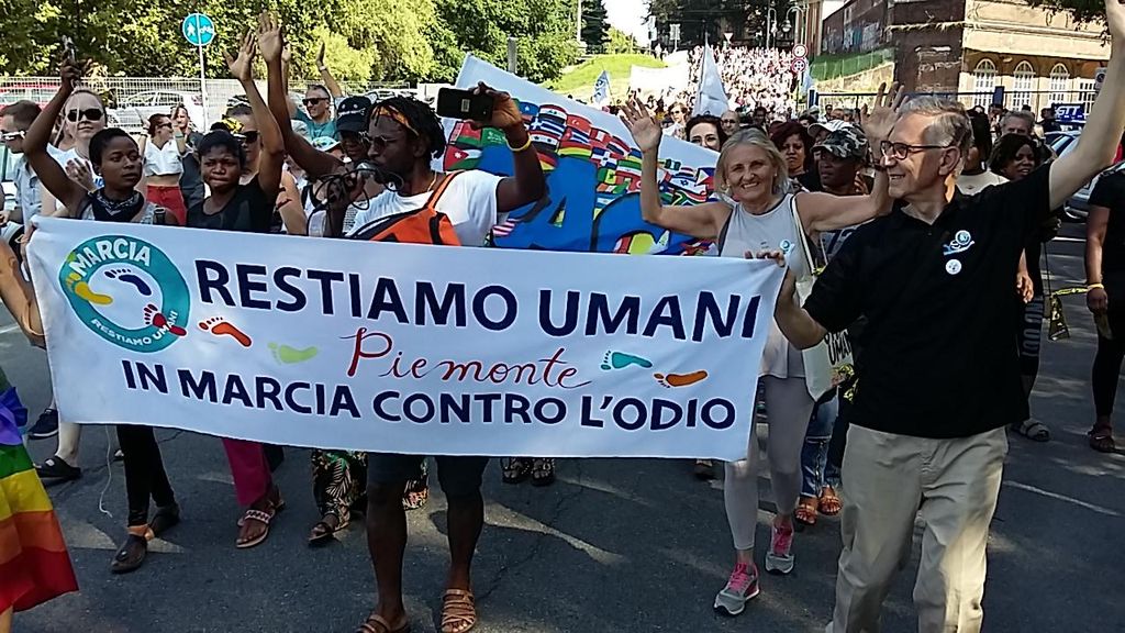 La Marcia "Restiamo Umani", ideata e promossa dall'attivista per i diritti umani e camminatore per la pace John Mpaliza, dopo esser partita il 20 giugno da Trento, nel fine settimana ha fatto tappa a Torino.