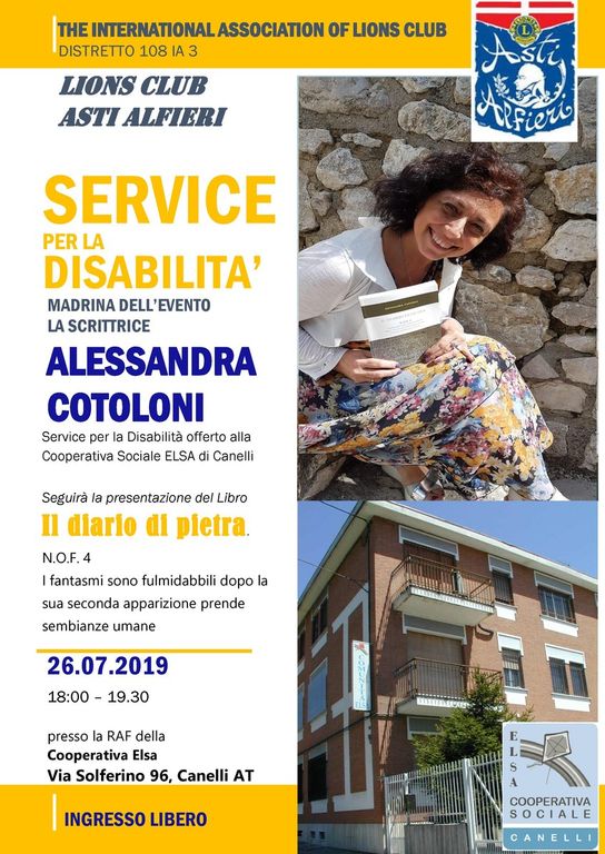 Si svolgerà venerdì 26 luglio, alle 18, presso la sede della R.A.F. Comunità Elsa, a Canelli, alla presenza delle autorità Lions e amministrative locali e della regione Piemonte, la cerimonia di consegna da parte del Lions Club Asti Alfieri, all’interno del Service per la Disabilità, di apparecchiature sanitarie e ricreative per gli ospiti della Cooperativa sociale Elsa.