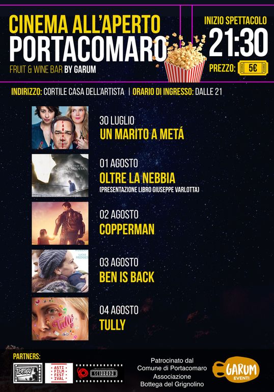 Al via domani sera, mercoledì 24 luglio, la rassegna cinematografica all’aperto che per le prossime quattro settimane caratterizzerà, dal mercoledì alla domenica, le serata portacomaresi.
