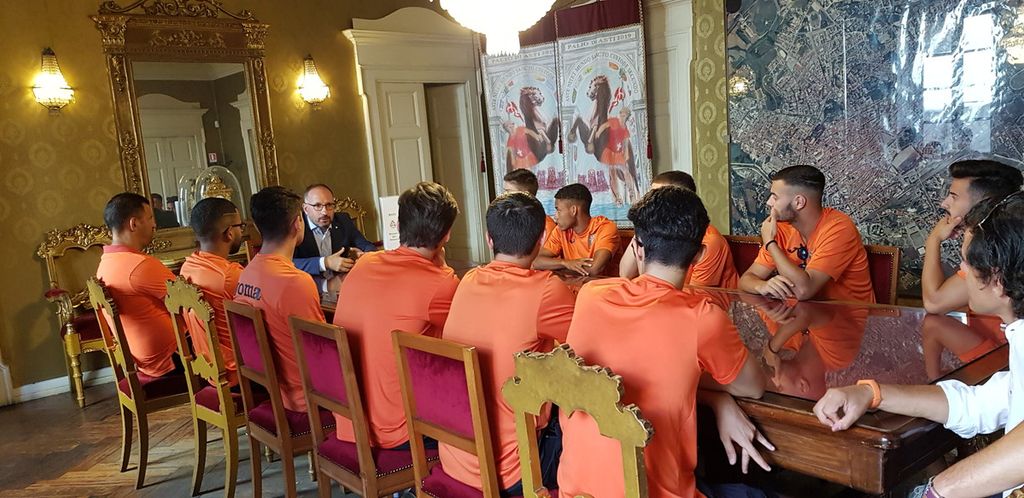 Il sindaco Maurizio Rasero ha ricevuto in Municipio la squadra degli under 19 della Società Astigiana di calcio a 5 Orange Futsal, accompagnata dall’allenatore Hernan Patanè e dal vice allenatore Massimo Iglina.