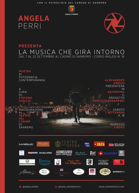 Oggi avremo modo di confrontarci con Angela Perri, fotografa ligure che si occupa di fotografia di spettacolo. L’artista sta lavorando all’organizzazione della sua prima mostra dal titolo “La musica che gira intorno” che si terrà nel foyer del Casinò di Sanremo dal 7 al 22 settembre , e in questo articolo scopriremo maggiori informazioni sul suo percorso fotografico e le sue passioni…