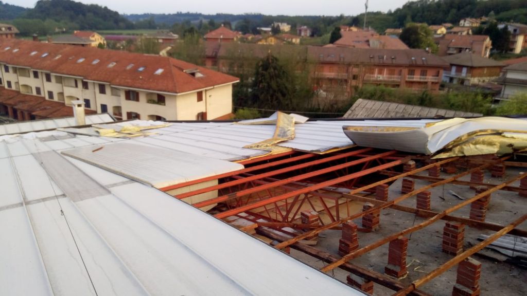 L’oratorio e la chiesa quindi hannoriportato danni altissimi ma anche il tetto del condominio di via Monferrato ha avuto diversi danni, creando serie difficoltà agli abitanti dell’ultimo piano.