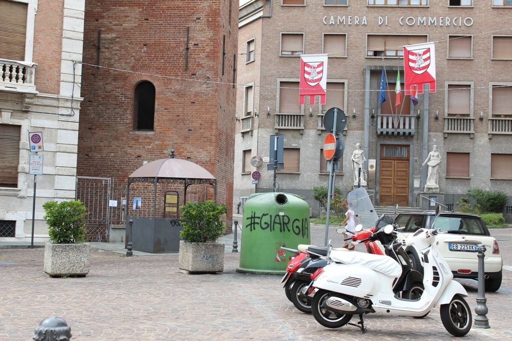 A sollevare la questione è Angela Motta, capogruppo Pd in Consiglio Comunale, raccogliendo le perplessità dei residenti dopo che, ormai da parecchi mesi, la campana, già abbruttita dalle scritte (una riporta, a grandi caratteri, il nome di un consigliere comunale), è stata posizionata in piazza Medici.