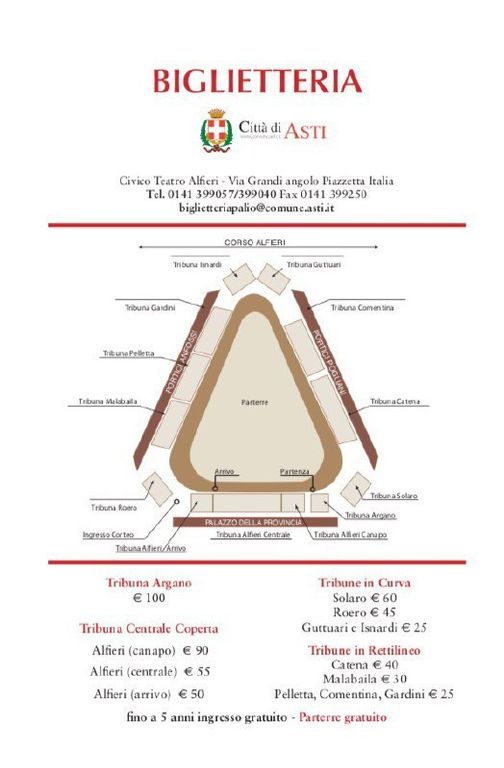 • TRIBUNE IN RETTILINEO : Catena 40 euro, Malabaila 30; Pelletta, Comentina e Giardini 25 euro