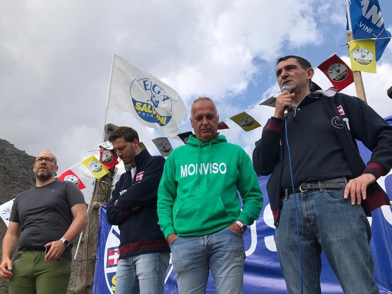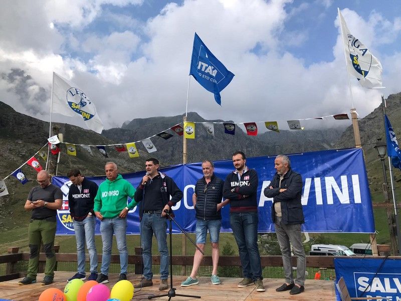 Sul palco, oltre al senatore Calderoli, sono presenti il capogruppo della Lega alla Camera Riccardo Molinari, il senatore Giorgio Maria Bergesio, il parlamentare e sindaco di Genola Flavio Gastaldi, l'europarlamentare Alessandro Panza, il vice presidente della Regione Piemonte Fabio Carosso, e il sindaco di Fossano Dario Tallone.