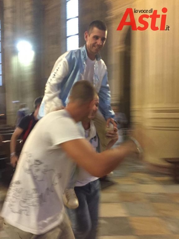 Il Palio è stato prima mostrato in Comune dal sindaco di Asti, Maurizio Rasero, sul balcone davanti a una piazza san Secondo gremita e festante. Successivamente è entrato in Cattedrale, acclamato da una folla in lacrime.