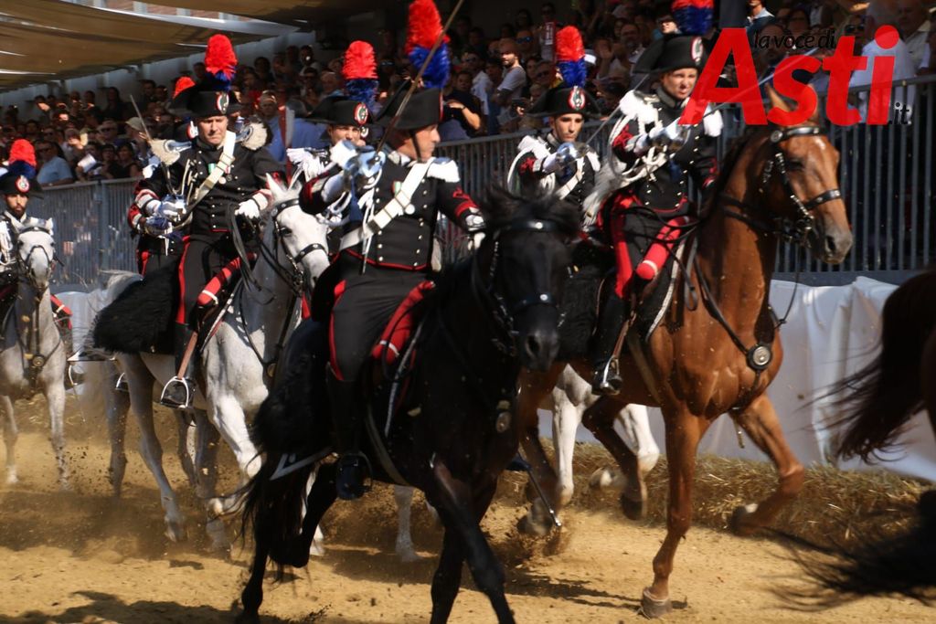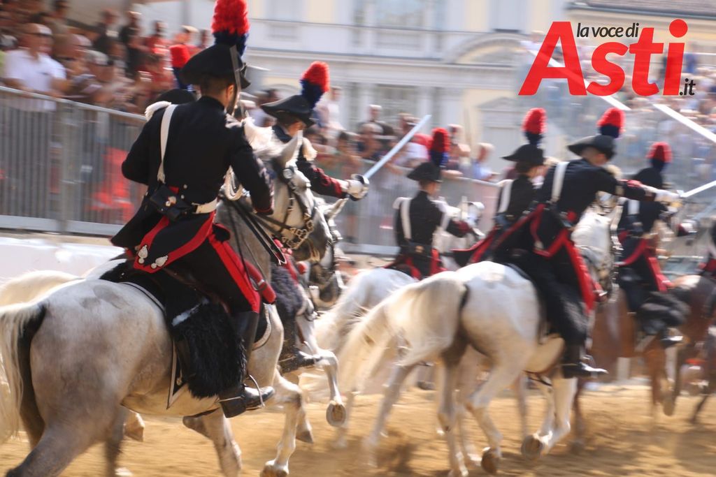 Il Quarto Reggimento Carabinieri a cavallo ha reso omaggio alla città di Asti, guidato dal Tenente Piergiorgio Cataldo, con una carica appositamente studiata
