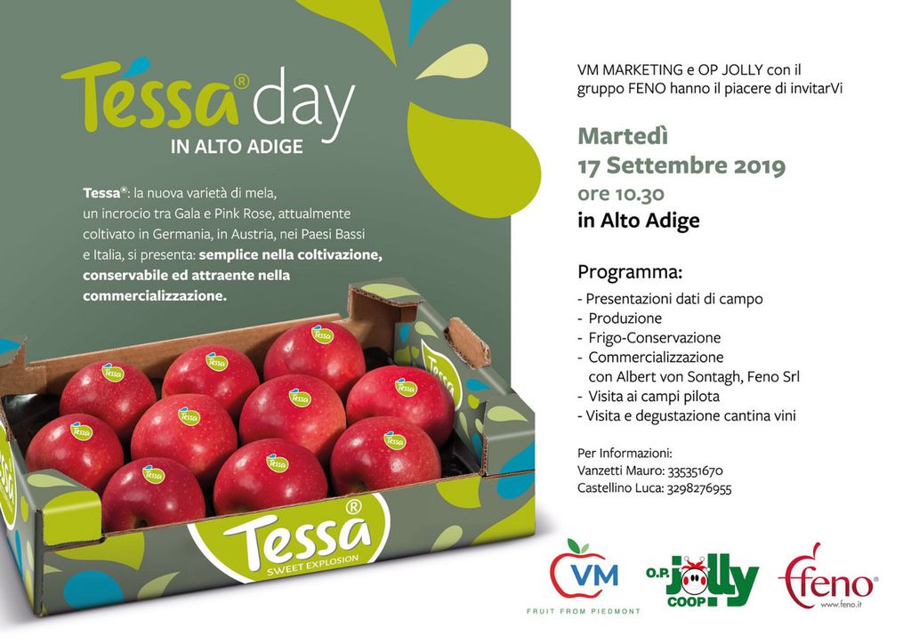 Sono passati solamente poco più di cinque mesi dalla firma dell’accordo di collaborazione tra il gruppo Feno GmbH da una parte e VM Marketing ed OP Coop Jolly dall’altra, che di fatto ha ufficializzato l’inserimento delle due strutture piemontesi nel progetto di produzione e commercializzazione della nuova varietà di melo Tessa ®, ma da quel 1° aprile 2019 il comparto frutticolo cuneese non è stato sicuramente a guardare.