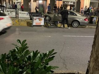 Intorno alle 23.30 questa sera una Mercedes, per cause in via di accertamento, è uscita di strada urtando violentemente i cartelli pubblicitari.