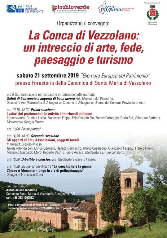 La giornata sarà preceduta a Vezzolano il 21dal convegno "La conca di Vezzolano" un intreccio di arte, fede, paesaggio e turismo. Al termine: Inaugurazione della mostra La conchiglia e la piuma.