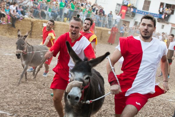 DOMENICA 22 SETTEMBRE: IL PALIO DEGLI ASINI - La sfida tra gli otto borghi di Cocconato si svolge in due batterie nelle quali due corridori per squadra (fanti) spingono gli asini in gara sull’anello tra piazza Giordano e piazza Cavour, in un contesto di difficoltà dettato dalla salita e, in discesa, tra le strette vie che fino all’ultimo balzo non svelano la prima squadra che taglierà il traguardo. “L’asino deve essere incitato alla corsa e non galoppato” specifica l’articolo 10 del regolamento. Il capitano del Palio di questa 50ª edizione è Giorgio Apostolo. La corsa è preceduta da una sfilata di oltre 700 figuranti in abiti storici tra le strade del centro del paese (via Vittorio Veneto, piazza Cavour, corso Pinin Giachino, via Giustinito, via Garibaldi, piazza Statuto, via Roma, piazza Cavour, via Mazzini e piazza Melchiorre Giordano), con inizio alle 14.30: dame, cavalieri, mercanti, popolani evocheranno i quadri preparati nel corso dell'anno dai diversi borghi in una rievocazione che si basa su fatti storicamente documentati e personaggi che vissero a Cocconato tra il 1200 e il 1400.