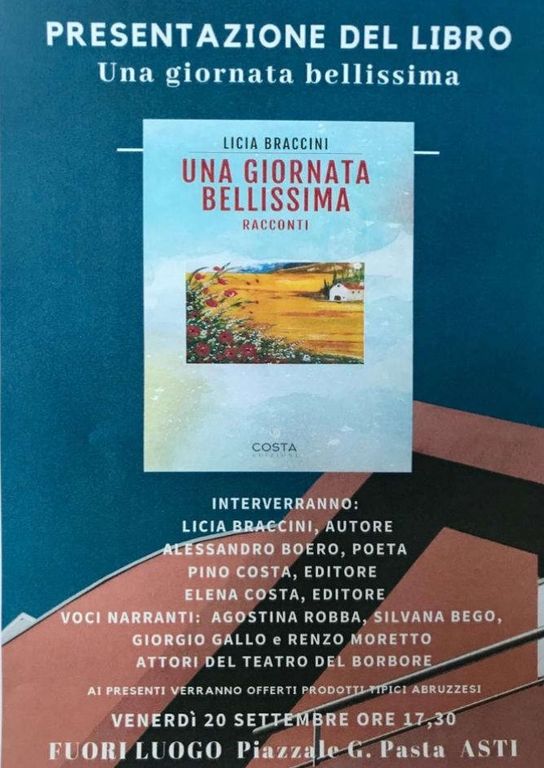 Venerdì 20 settembre al Fuoriluogo di Asti, la scrittrice Licia Braccini presenta il suo libro "Una giornata bellissima".