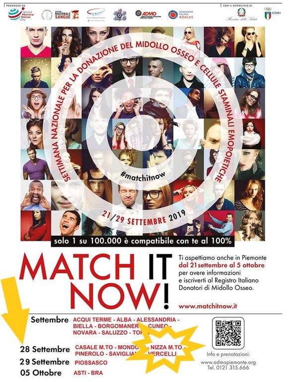 L’ADMO Valle Belbo e Bormida (Associazione Donatori di Midollo Osseo), in collaborazione con i Clown di “L’Arte del sorriso” di Asti e la Croce Verde di Nizza Monferrato organizzano l’evento Nazionale Match it now.
