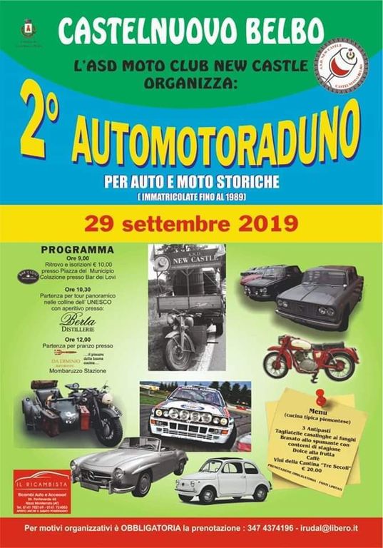 A Castelnuovo Belbo, domenica 29 settembre si terrà il 2° automoraduno di auto e moto storiche immatricolate fino al 1989