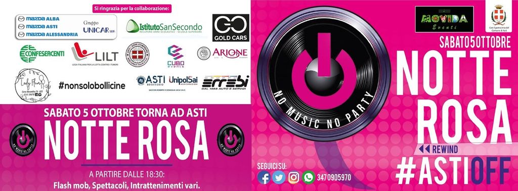 Sabato 5 ottobre organizzata da Movida Eventi con il patrocinio del Comune di Asti, avrà come filo conduttore il rosa della prevenzione, grazie anche alla Lilt di Asti.