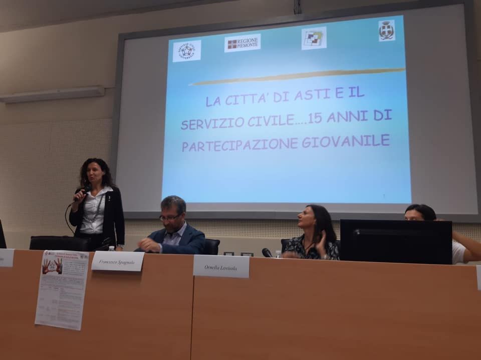 Ieri ad Asti il convegno "Servizio Civile ...15 anni di partecipazione giovanile" ha visto la presenza del sindaco di Asti Maurizio Rasero, dell'assessore Regionale Chiara Caucino, gli assessori Mariangela Cotto e Elisa Pietragalla, il dirigente Roberto Giolito e per l'Ufficio Servizio Civile Ornella Lovisolo, Guido Vercelli e Alessandra Lagatta.