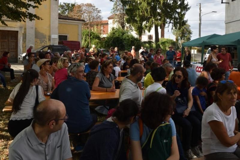 Successivamente, i camminatori hanno potuto visitare Cascina Graziella ed essere informati, alla presenza delle istituzioni locali, sull’avanzamento dei lavori di ristrutturazione del bene. Dopo la cena, preparata dalla Proloco di Moncalvo, che ha donato i proventi della stessa al progetto di ristrutturazione di Cascina Graziella, la serata è stata illuminata dall’energia di tre rock band piemontesi – Mot Low, Artemisia e Quindi – che con entusiasmo e generosità hanno portato la loro musica nella piazza di Santa Maria.
