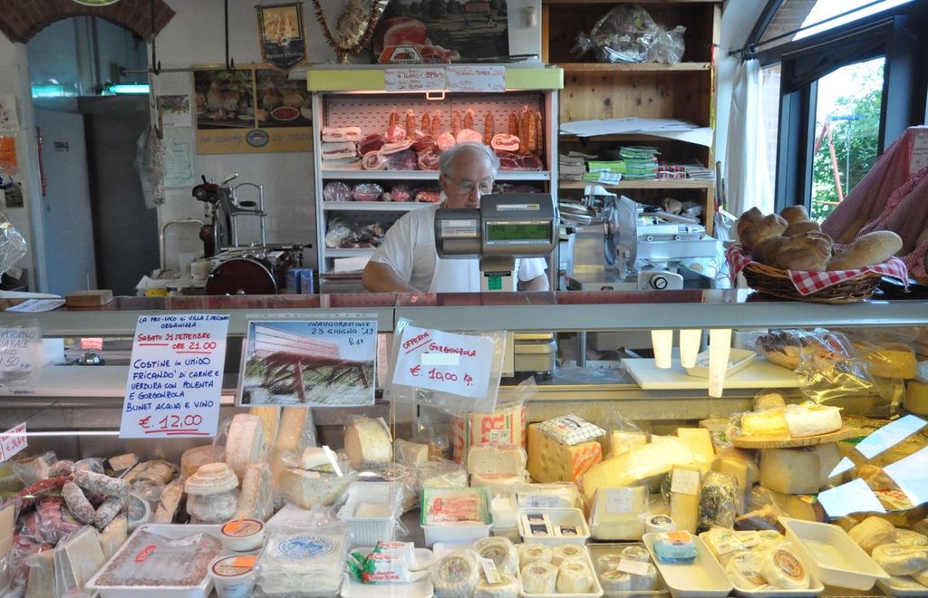 Una bella insegna all’esterno del negozio colpisce: “agnolotti e salsiccia di produzione propria”. Appena entrati, agli occhi si presenta come un piccolo ma ben fornito supermercato di paese, con scaffali ricchi di giornali e riviste e prodotti alimentari di ogni genere, ma al fondo del corridoio, si capisce che non si tratta di una semplice edicola, né di un generico negozio.