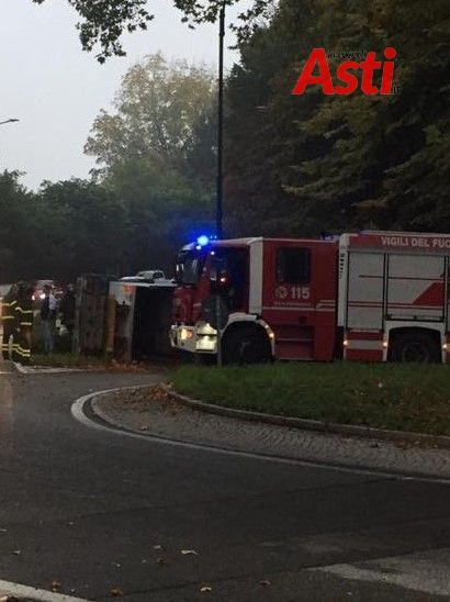 I Vigili del Fuoco di Asti sono al lavoro da qualche minuto per mettere in sicurezza l'area al fondo di via Spandre, alla rotonda che porta in strada Valmanera.