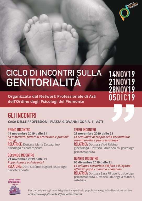 Il Network Professionale di Asti dell'Ordine degli Psicologi del Piemonte organizza un ciclo di incontri sulla genitorialità.