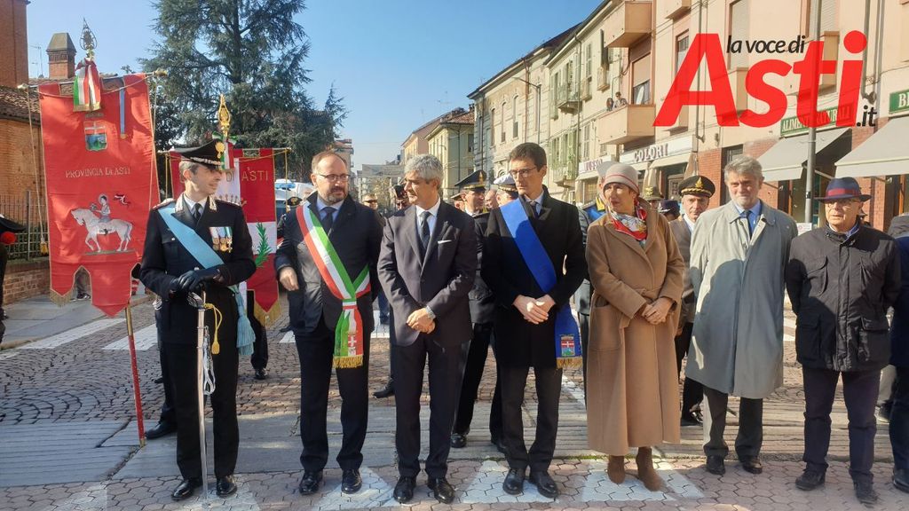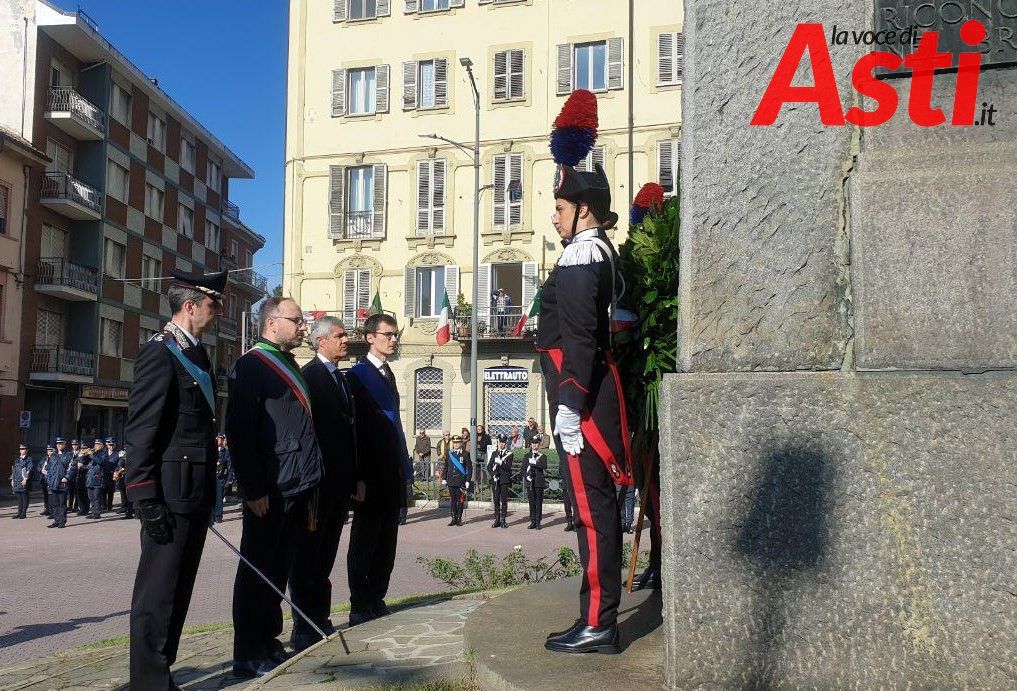 Dopo la cerimonia dell’alzabandiera, sono stati resi gli Onori ai Caduti con deposizione di corona di fiori da partedel prefetto Alfonso Terribile, del presidente della Provincia di Asti Paolo Lanfranco, del sindaco di Asti Maurizio Rasero e del comandante provinciale dei Carabinieri tenente colonnello Pierantonio Breda che ha letto il toccante messaggio del Capo dello Stato Sergio Mattarella.