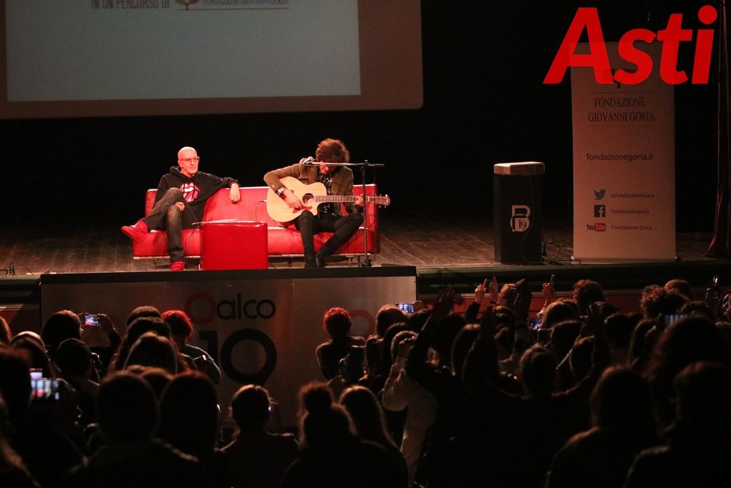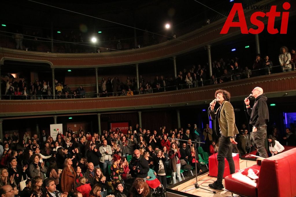 “Non si possono imprigionare le idee", ricorda il cantautore che in due ore affascina la platea con le sue parole e qualche pezzo in acustica, richiesto a gran voce non solo dai presenti ma anche da un altro foltissimo pubblico, quello della diretta facebook del nostro giornale, seguita da migliaia di persone che accompagnavano le parole di Ermal con emozione e partecipazione.