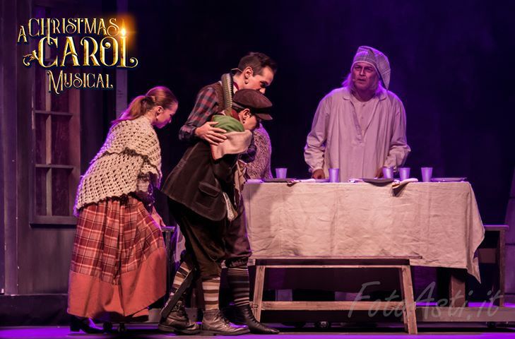 Ebenezer Scrooge - Fabrizio Rizzolo Fantasma di Jacob Marley e Ebenezer Scrooge giovane - Marco Caselle Fantasma dei Natali passati e Todd – Maurizio Misceo Fantasma del Natale presente e Dick Wilkins - Salvo Montalto George Fezziwig e Joe - Stefano Saccotelli Anna Fezziwig e signora Dilber – Luisa Trompetto Mina - Noemi Garbo Fred e ensemble - Jacopo Siccardi Bob Cratchit - Alessandro Germano Rose Cratchit - Valeria Camici, Marianna Bonansone Tim Cratchit – Jacopo Cioni Peter Cratchit e ensemble - Andrea Mortarino Martha Cratchit e ensemble - Francesca Canova, Emanuela Collura Fan e Belinda Cratchit - Carmengiulia Falcetti, Alexandra Romano, Vittoria Marfella, Eleonora Loi, Lucrezia Pontonio, Mathilda Buonanno, Francesca Fossati, Sara Maria Salomone Nicholas Cratchit e Ebenezer Scrooge bambino – Francesco Saias, Simone Marietta, Filippo Gervasi, Gabriele Marchetti Marito Mina e ensemble - Sandro Mazzuferi Eloise e ensemble – Beatrice Burelli Loren e ensemble – Marianna Bonansone, Silvia Zatti Con la partecipazione di un Cast Junior di oltre trenta attori e comparse