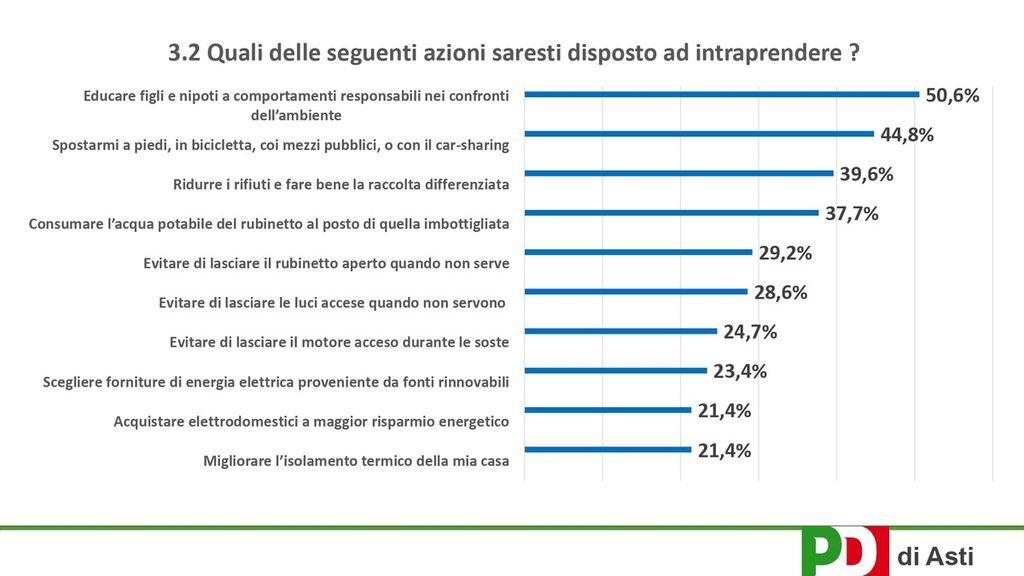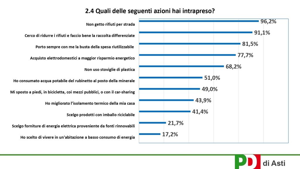 È quanto ha messo in cantiere il Partito Democratico con un’indagine/sondaggio partita nell’estate per verificare le sensibilità degli astigiani rispetto all’ambiente.