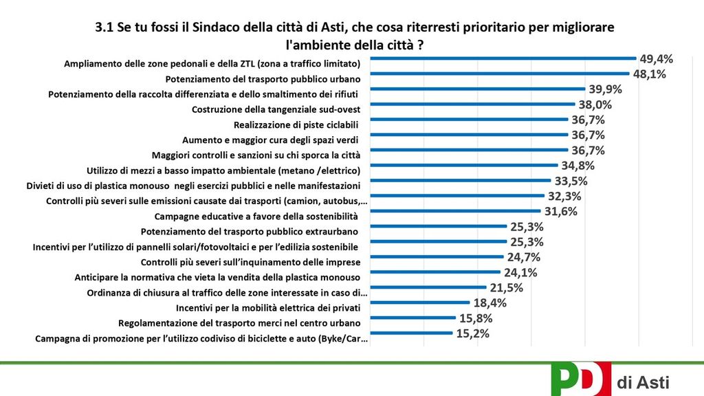 Circa 300 astigiani hanno votato sul sito del PD astigiano e anche nella sede di corso Casale. Il sondaggio, curato e redatto da Rosella Sciutti ha messo in evidenza alcune considerazioni importanti che, dicono dal PD, “potrà essere a disposizione dell’Amministrazione senza alcuna polemica”.