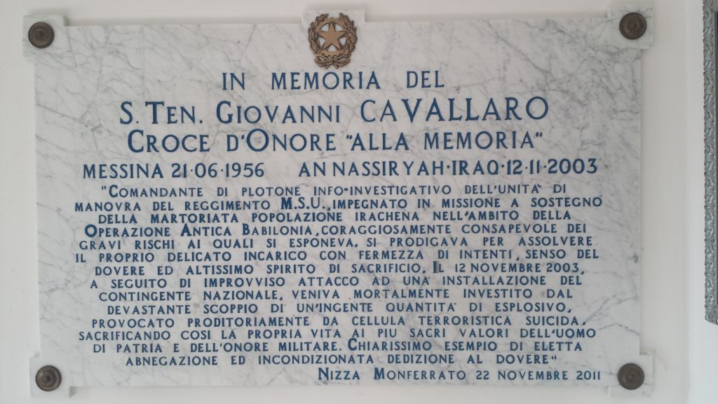 Alle 10 odierne si terrà una messa in suffragio del sottotenente Giovanni Cavallaro presso la chiesa nostra signora di Loreto di Nizza Monferrato.