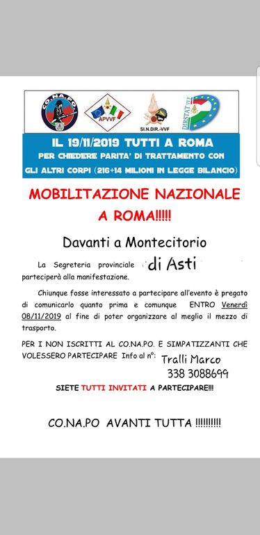 Martedì 19 novembre a Roma ci sarà una manifestazione di protesta che vedrà impegnati anche i Vigili del Fuoco di Asti.